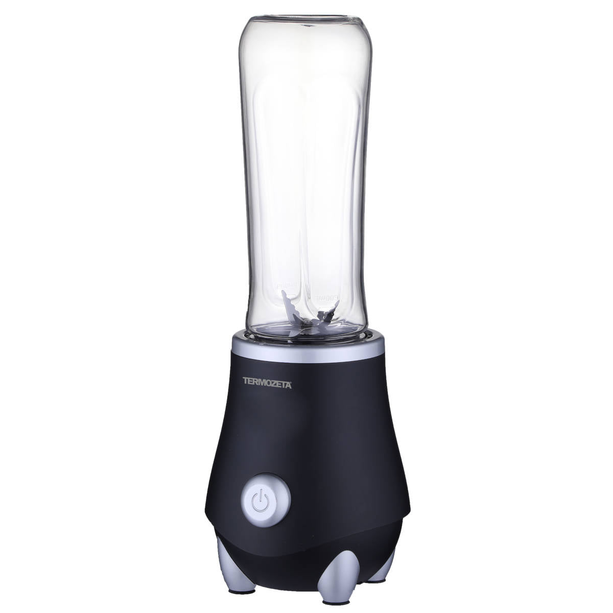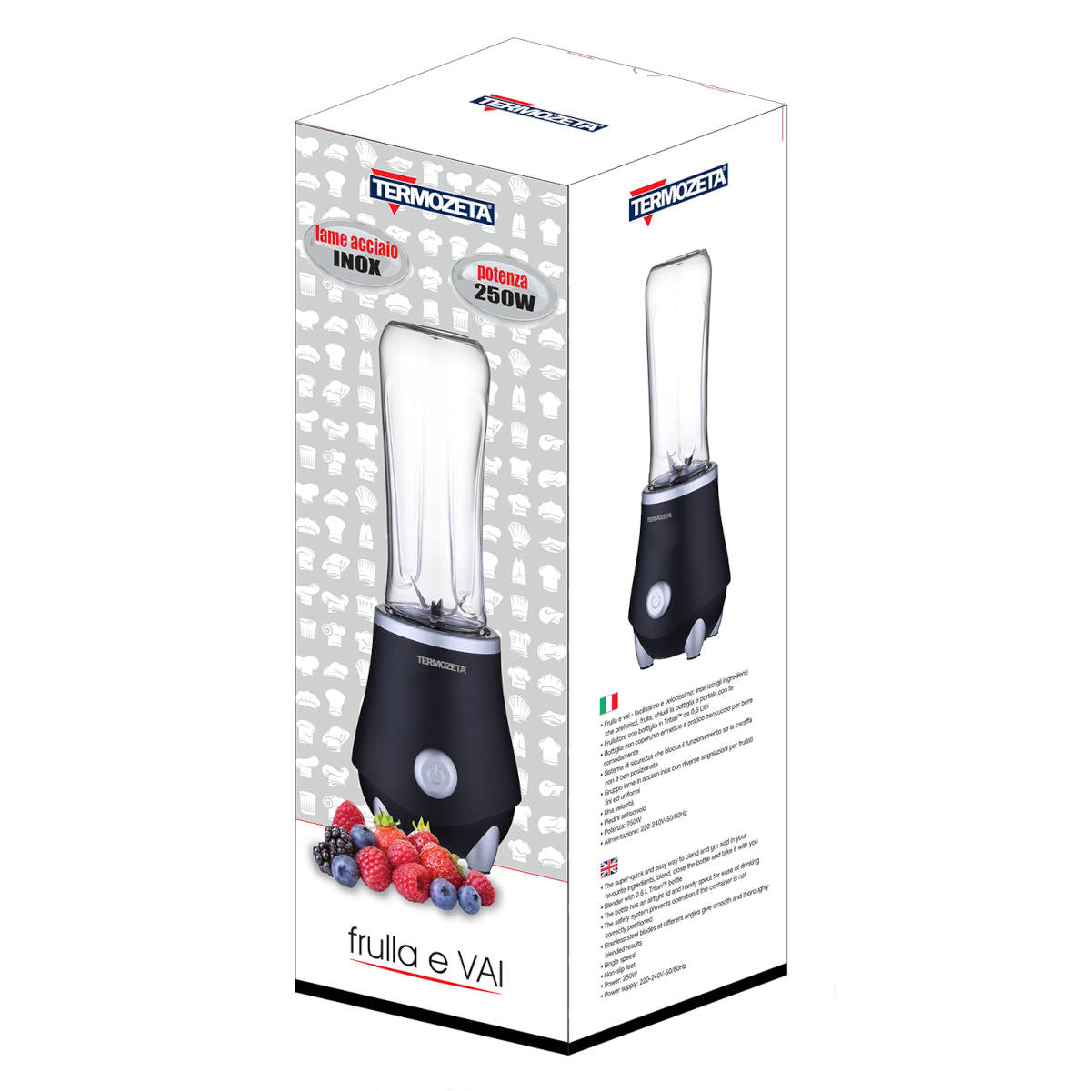 Frullatore: completo di un bicchiere graduato da 0,6 litri, questo frullatore a una velocità è dotato di un gruppo lame in acciaio inox con diverse angolazioni per frullati fini ed uniformi, coperchio ermetico e pratico beccuccio per bere comodamente, sistema di sicurezza che blocca il funzionamento se la caraffa non è ben posizionata.