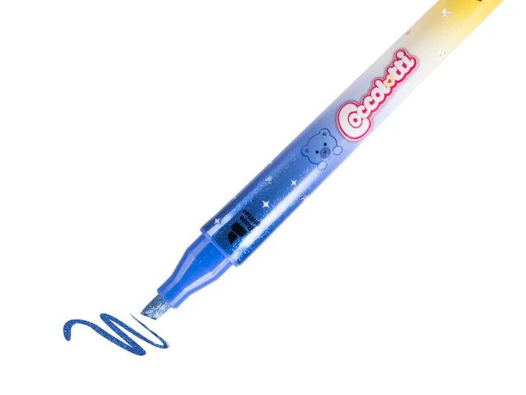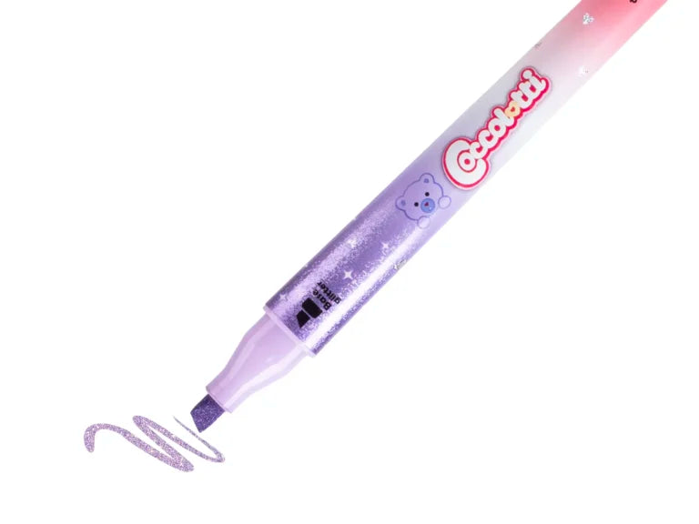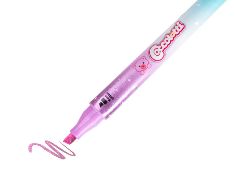 Perfetto per scuola, journaling e disegno creativo, questo evidenziatore cambia colore con un tratto sovrapponibile, regalando effetti sorprendenti su ogni pagina. Da un lato trovi una punta glitterata per un effetto brillante e delicato, dall’altro una punta con inchiostro a contrasto che, sovrapposta, cambia la tonalità del colore, creando giochi visivi unici.