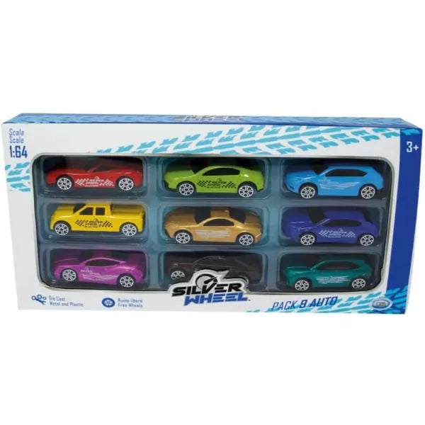 Confezione con 9 auto in diecast, dimensioni 7 cm