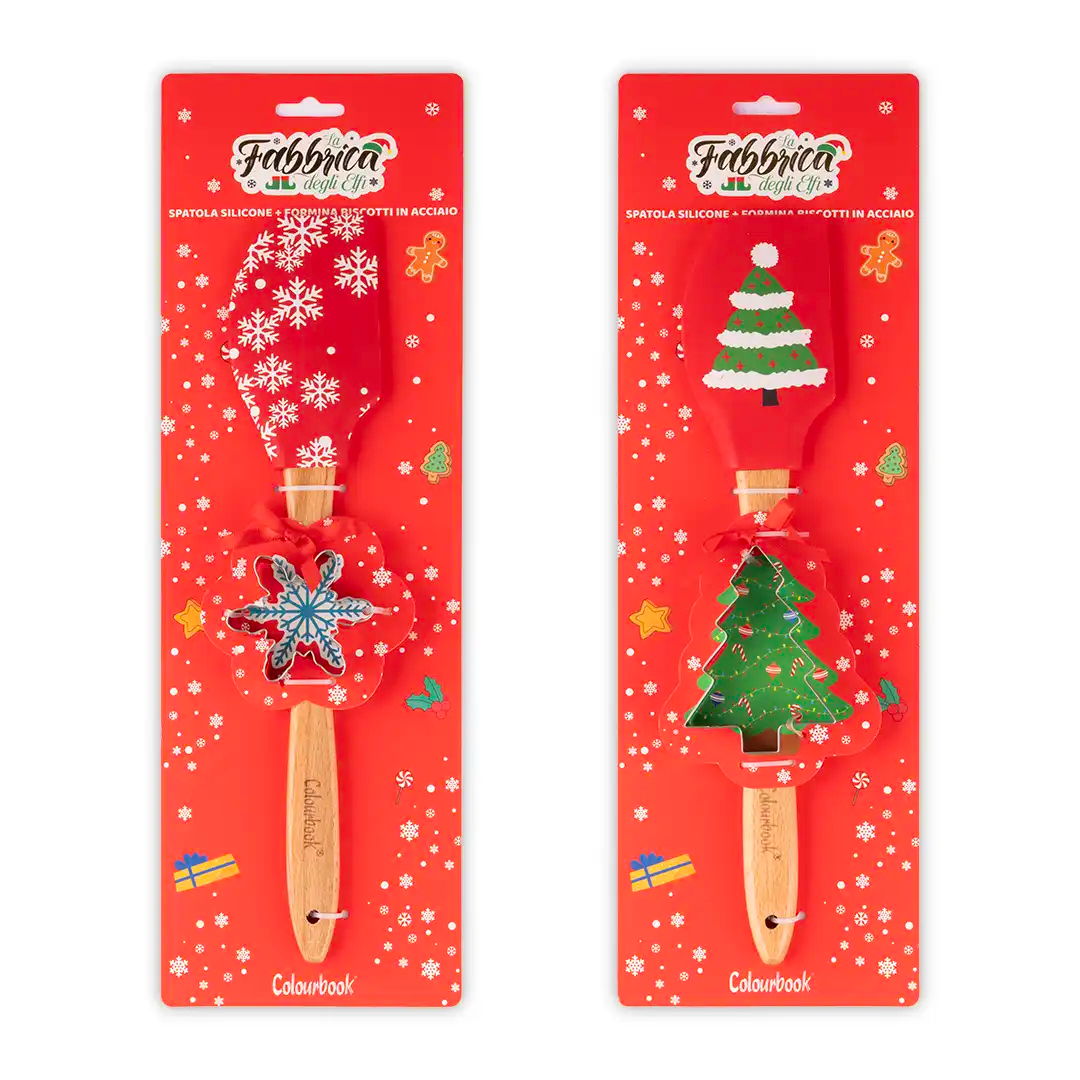 Disponibile in due varianti — fiocco di neve e albero di Natale — entrambe con formina abbinata al tema della spatola, è perfetta per mescolare, decorare e servire con un tocco di magia.