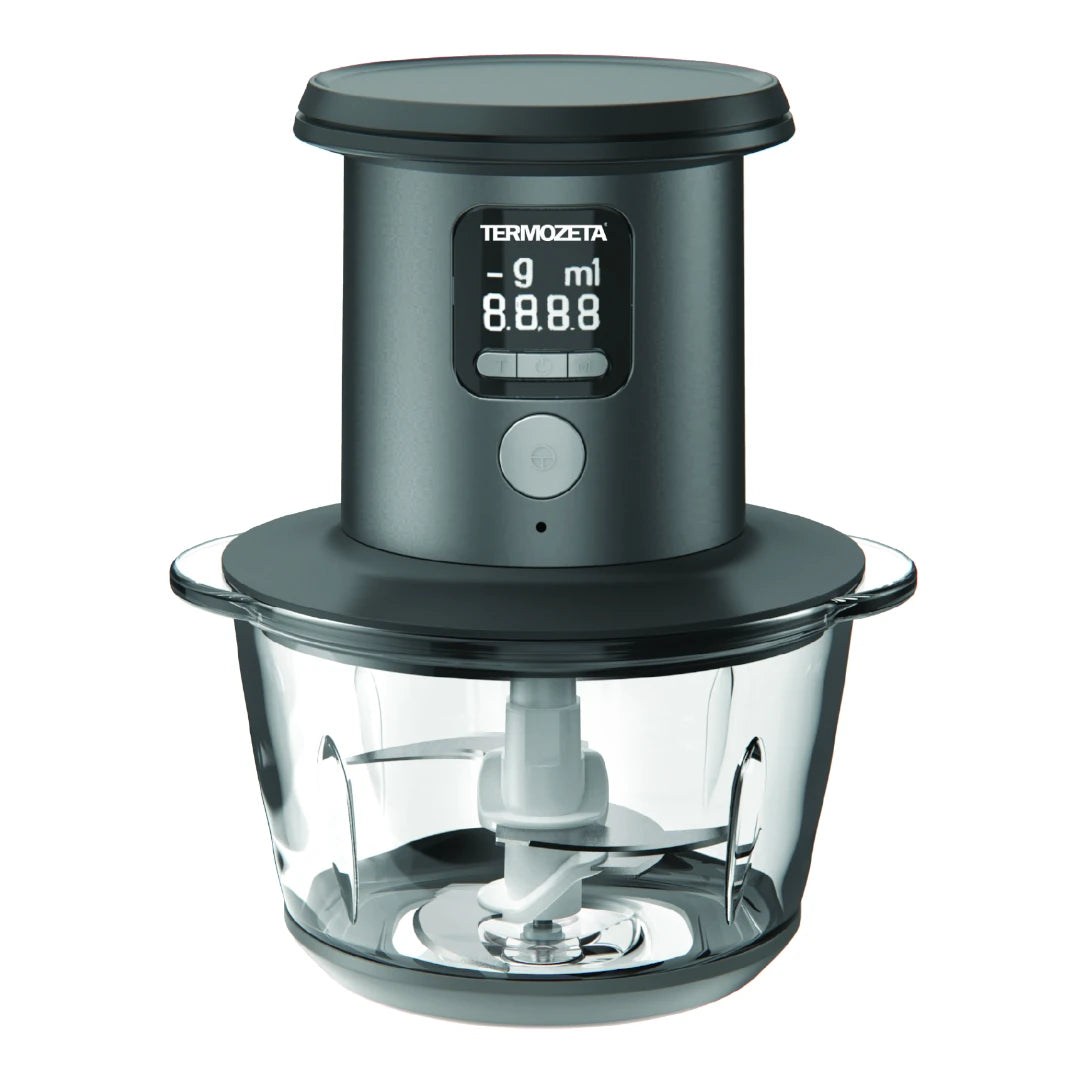 Tritatutto da cucina con funzione di bilancia integrata, ideale per tritare e pesare ingredienti con precisione. Design compatto, facile da usare, perfetto per risparmiare tempo e ottimizzare la preparazione culinaria.